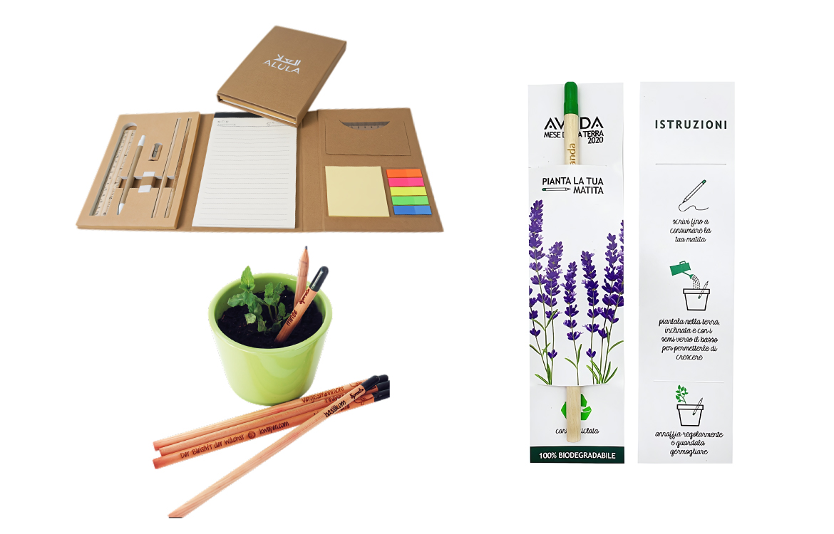 Show sustainability with bamboo desk sets or reusable paper bags featuring both your logo and the recipient’s name.