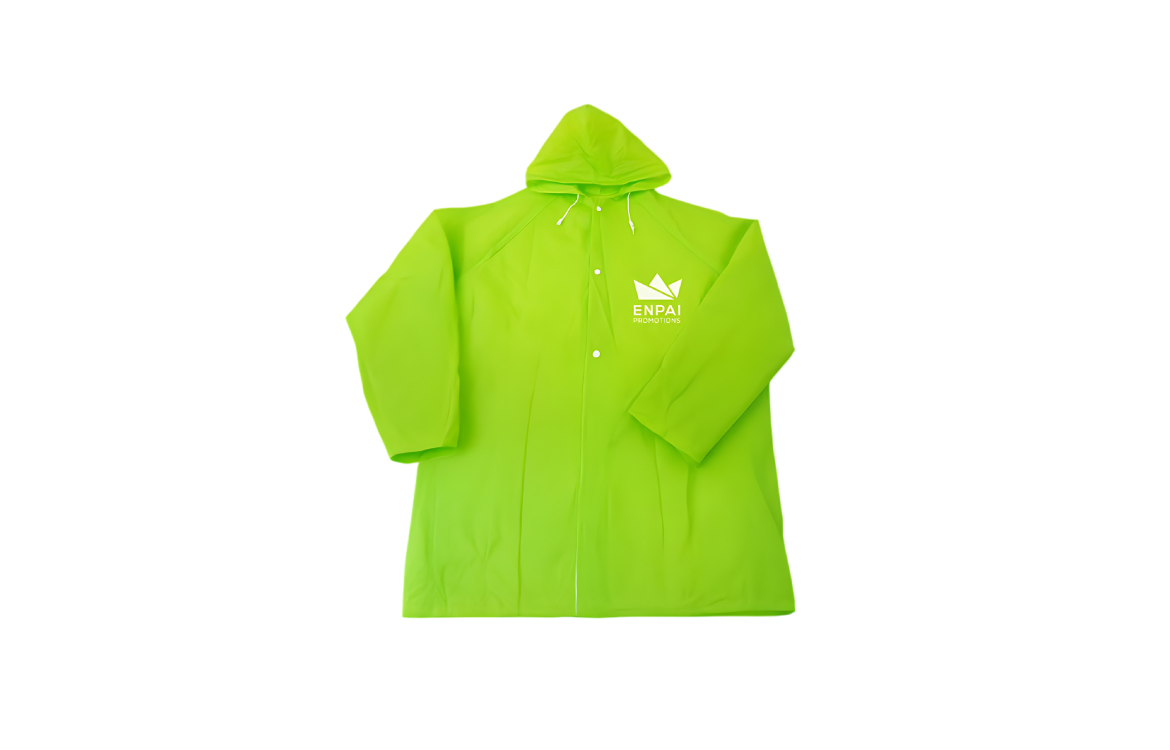 Lightweight rain jacket: For outdoor promotions, field teams, school activities, delivery staff, and temporary event workers, made of lightweight and durable EVA material, portable and eco-friendly. It upgrades a simple giveaway into a weather-ready solution and gives the brand visibility in real use situations.