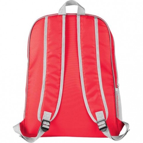 Durable polyester material makes this backpack strong and long-lasting! Features a zippered main compartment, a zippered front pocket, and a side mesh pocket!! Includes two adjustable, reinforced, padded shoulder straps and a carrying handle!