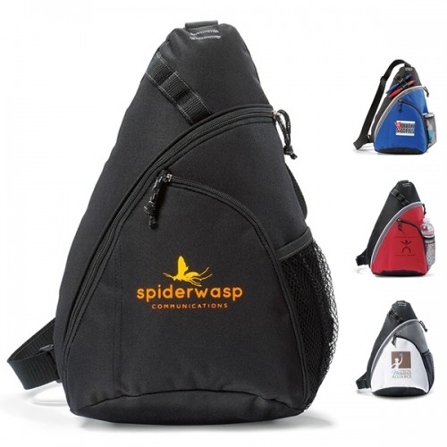 Great modern sling pack for a variety of uses Two zippered compartments to store all accessories Adjustable shoulder straps Pen loop (pen not included) Side mesh pocket for water bottle (not included) This product is kid-friendly/CPSIA compliant Back panel matches primary bag color