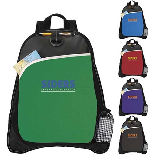 Backpack with front pocket Zippered main compartment Dual shoulder straps and carrying handle Daisy chain with D-ring attached