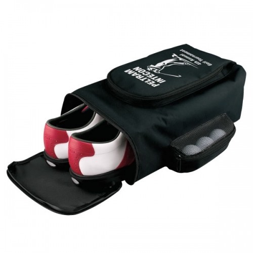 Shoe Bag Custom Golf Shoe Bags Constructed of 600 Denier PVC for high perceived value. Side mesh compartment for golf balls or shoe spikes. Separate compartment to accommodate polish, shoe mitt, etc! Nylon webbed carry handle.