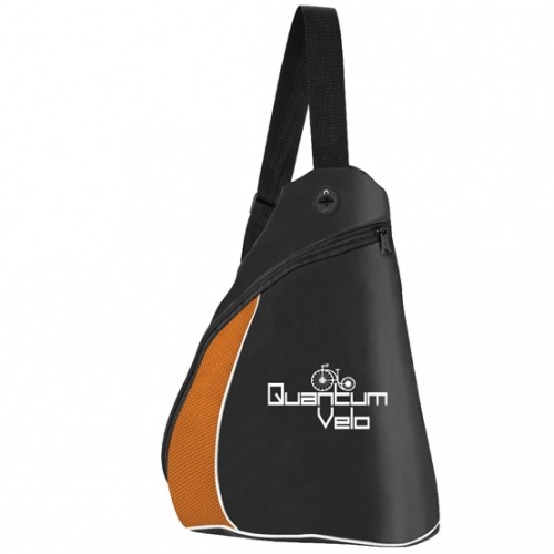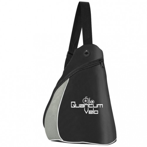 Durable 420-denier black polyester non-PVC material in a teardrop-shaped side sling backpack.