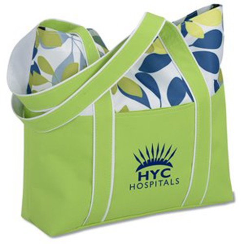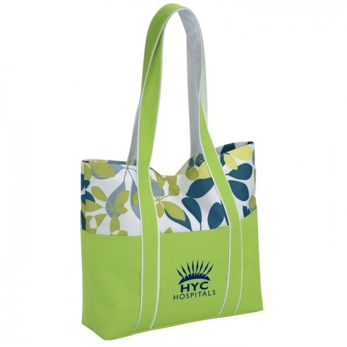 his durable 600D polyester tote provides portable storage for daily supplies, shopping purchases or beach necessities. The fashionable bag features a charming floral butterfly design on the upper half of the bag. Front slip pocket offers immediate access to smaller personal items. Dual 24" straps provide for hands-free carrying. Velcro® closure helps to ensure that bag contents remain inside, safe and secure.