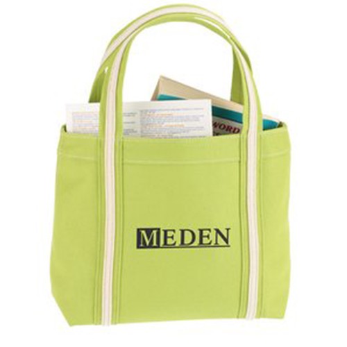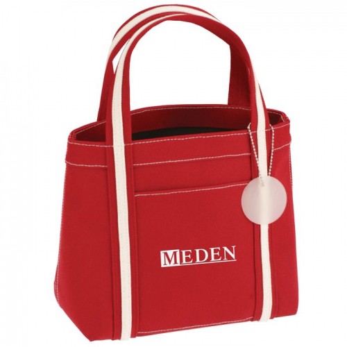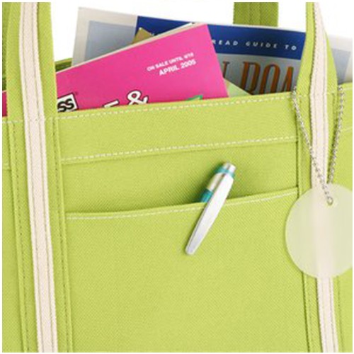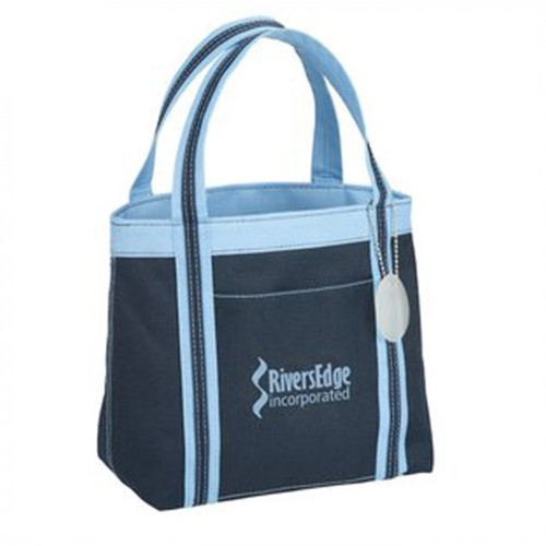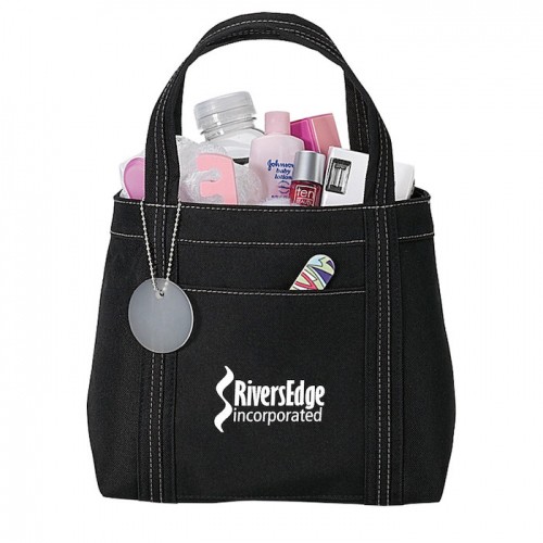 The purse-sized Piccolo Mini Tote offers a fun contrasting stripe and stitching. Front pocket stores quick-access items like cell phone, sunglasses or PDA (contents not included). Stylish 600-denier polyester tote is perfect for a day on the beach or a night out on the town. Makes a great gift bag too! Handles are 13" long.