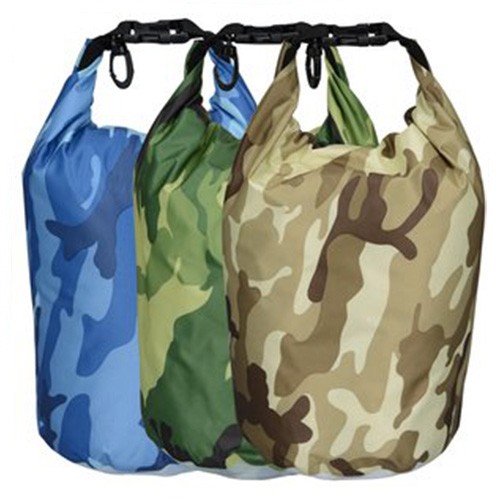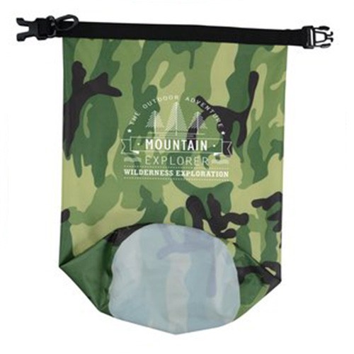 When you head outdoors make sure you’re prepared for unexpected weather. Keeping your belongings dry is essential and this 5 liter dry bag helps protect your items from moisture and rain. Bag is made of durable, water-resistant 210T ripstop polyester with a unique folding and buckle closure that keeps water out. Simply roll the opening of the bag over itself and then use the buckle closures to fasten the bag shut. Perfect for storing food items, snacks, extra layers of clothing and much more! The integrated clip near the buckle makes it easy to attach this bag to your other gear. This water-resistant dry bag is perfect for hiking, kayaking, trips to the beach, tailgating, boating and other outdoor adventures. A great giveaway for national parks, marinas, campsites, sporting events and more. Available in a variety of solid colors and several camouflage colors.