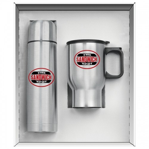 One (104) 500ml Vacuum Insulated Hot Beverage Carrier. One 450ml Steel City Super Saver travel mug. Packaged in a white presentation box. Add a Jet Directt full color on box - $1.25g per plus $50.00g Screen Charge.