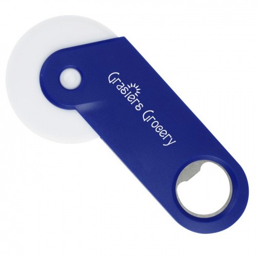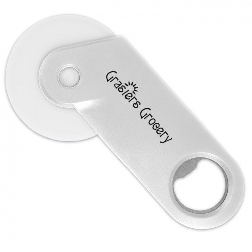 Elevate your brand with this custom bottle opener pizza cutter — a perfect branded opener and promotional opener for any campaign!