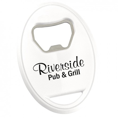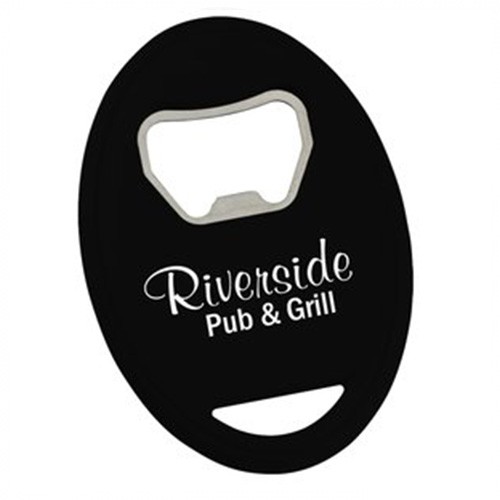 Never be caught with a bottled drink that you can’t open when you carry this stylish bottle opener. The unique design of this super thin bottle opener fits easily in your pockets without awkward bunching. Credit card design easily fits into wallets, pockets or purses. A stainless steel insert tackles the toughest opening jobs. They’ll see your imprinted logo every time they open a beer or bottled soda. A great promotional item for pubs, breweries, beer tours, restaurants and many more! Available in a variety of opaque colors to best match your business needs. For this item in solid colors, please see item #123816-OV-S Credit Card Bottle Opener - Opaque - Oval.