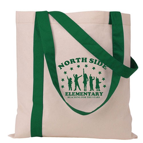 - Natural-colored cotton for high-impact imprint with your choice of accent colors.