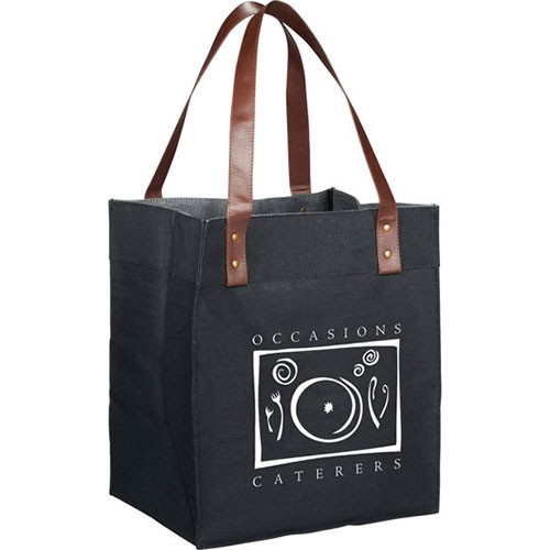 - Features 10" studded leather drop handles for a stylish twist on your typical grocery tote.