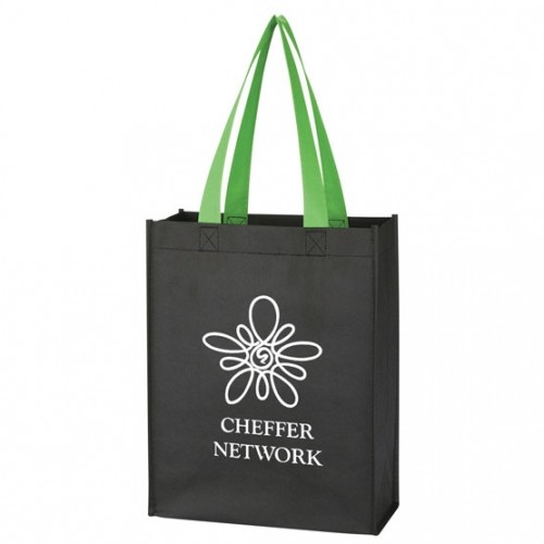 - Reusable tote made of 80 gram non-woven, coated water-resistant polypropylene material.
