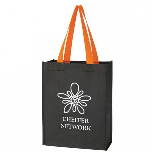 Reusable tote made of 80 gram non-woven, coated water-resistant polypropylene material..
