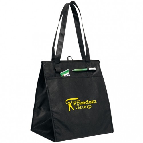 - Generously sized tote is made from rugged non-woven material with a thermal lining.