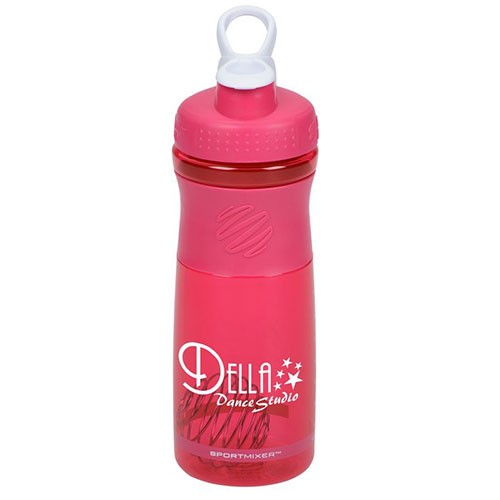 Keep hydrated throughout your workout or daily business with this mixer bottle. Features a screw on cover with a flip cap and large spout for easy drinking. An integrated carrying loop and the leak proof design makes traveling with the bottle simple and safe. Rubberized grips on the sides of the bottle make it easy to hold, reducing the risk of dropping. Blender Bottle is made of BPA-free Tritan plastic (#7) and can be recycled in only a few limited areas; check locally for more information. Included blender ball keeps your lemonade, iced tea or powder drink properly mixed and prevents mixes or flavoring from sinking to the bottom. The BlenderBottle® logo is printed beneath your brand logo for a co-branded look. Ounce and mililiter measurement markings on the bottle match the lid and loop. Available in a variety of sporty color designs.