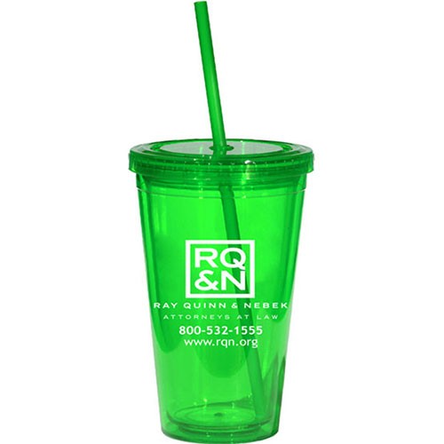 - Features matching straw, matching threaded lid, and molded grommet to secure straw.