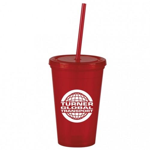- 450ml. polypropylene double-wall tumbler with matching press-on lid and straw.