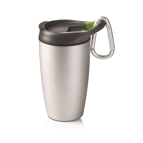 Includes a durable and leak proof carabiner lid that attaches to hiking bags and belt loops for hands-free transport.