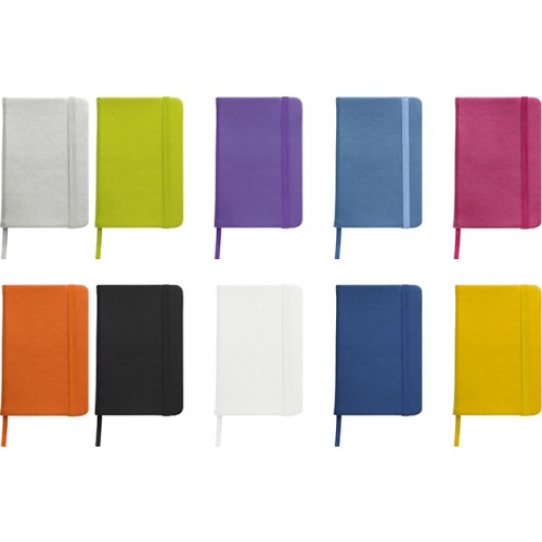 Leatherette note book, 96 lined pages, ribbon bookmark and a matching elastic fastening band.5" X 7" Writers Journal NotebookCustom NotebooksMatching Bookmark And Strap Closure80 Page Lined NotebookPVC Cover