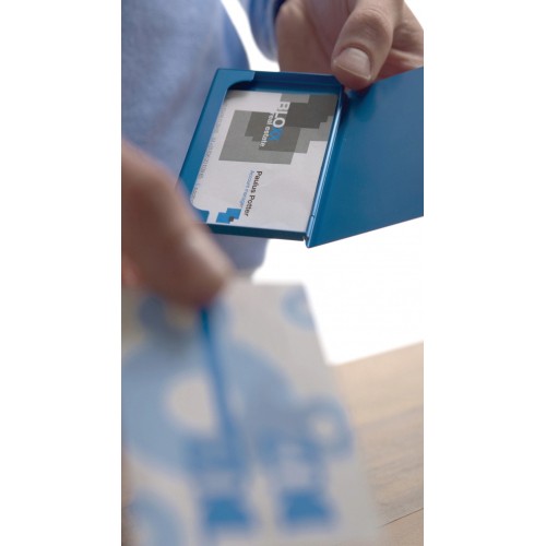 Holds approximately ten business cards.