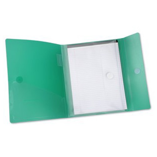 The single storage compartment of this business folder holds a plentiful stack of letter-sized papers. Designate one folder for each client, project, stack of handouts, sales report or fiscal year. Polypropylene construction provides a protective barrier around your most important papers to prevent damage. Flap closure snaps into place to keep papers secure.