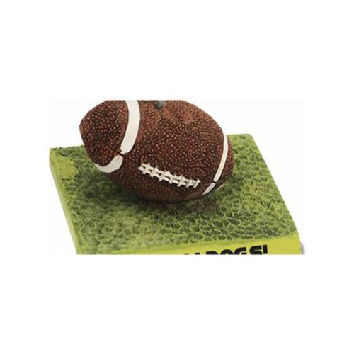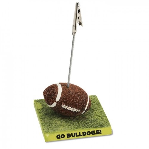 A brown football with painted white stitching sits on a green “field” base. A silvertone clip emerges from the top of the ball -- perfect for a reminder or picture. This decorative resin piece is also heavy enough to be used as a paperweight. Arrives individually gift boxed.