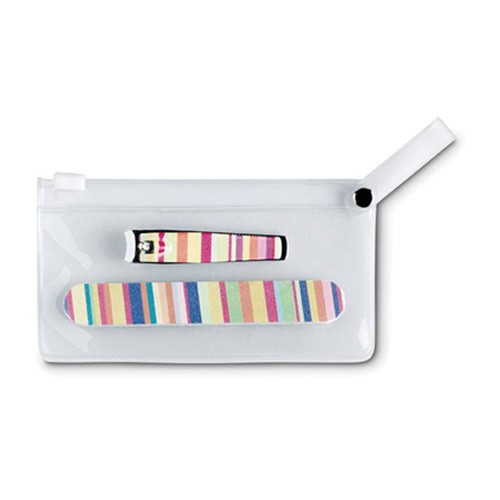 Manicure kit including a clipper and a nail file packed in a transparent pouc