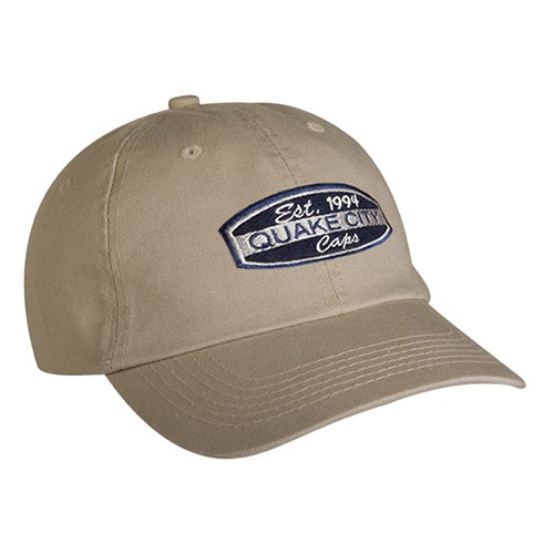 Laundered chino twill with 6 panel styling.Includes 6 sewn eyelets and 6 rows of visor stitching.Complete with a fabric strap closure that neatly tucks away. Imprint: Embroidery Imprint Area: 4 1/2"W x 2 1/2"H