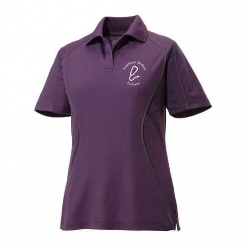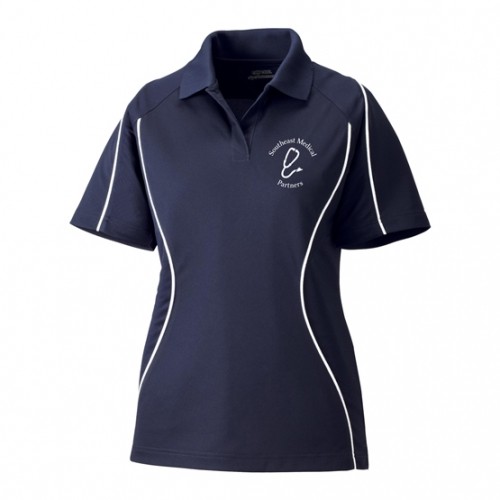 Stylized piping details on the front body, sleeves, and shoulders along with color-block back panels give this polo a very athletic, contemporary flair.