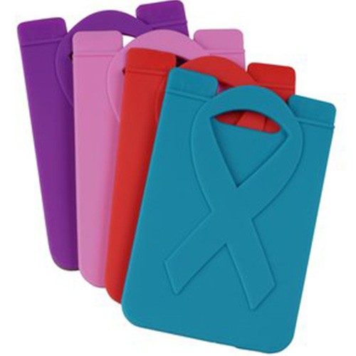 Made of silicone, these custom smartphone wallets are sure to simply your day. The wallet adheres to the flat surface of the back of your smartphone, ensuring it’s always on hand. Wallet features a raised ribbon design that is perfect for raising awareness for a variety of causes. 3M adhesive backing sticks securely to the back of your cell phone and won’t leave any sticky residue when removed. Perfect for holding credit cards, ID cards or cash. Size: 3-3/8" x 2-1/4".