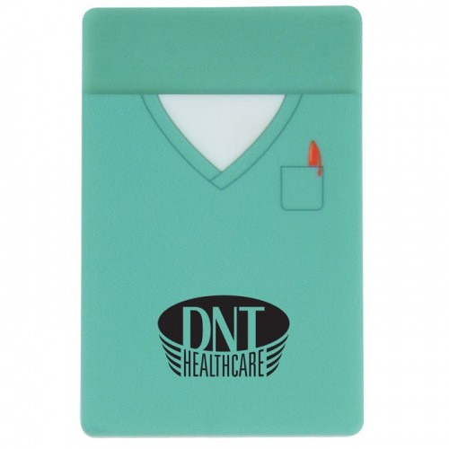 These cute cell phone pockets feature a unique scrubs design. Pocket holds credit cards, IDs, hotel room key cards, gym passes or business cards. You can even rest assured that your credit card and hotel swipe card will not be deactivated with the thoughtful design. 3M adhesive backing sticks securely to the back of your cell phone and won't leave any sticky residue when removed. Great for doctors, hospitals, nurses and any other professionals that wear scrubs. Size: 3-3/4" x 2-1/4".