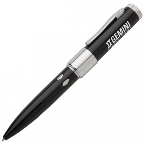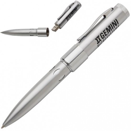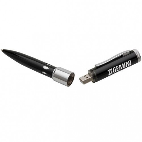 - This stylish pen opens at the middle to reveal a conveniently located USB drive.