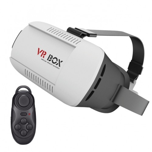 Plastic VR box, with a nylon head strap and memory foam cushioning, View Angle: 70-80°, view distance: Watch 1000 inch screen in 3 meters, Lens transmittance: OD 42mm aspheric optical hard resin lens, support within myopic 600 degrees, Lens enlargement factor: 1-2% / 1.5-2, compatible with both Android and iOS phones of sizes 3.5''-6.0''
