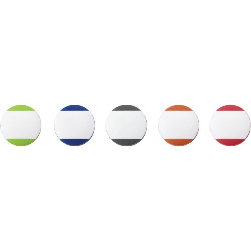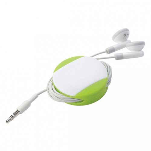 Silicone cable winder with a white plate on one side for printing purposes.