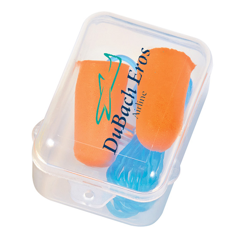 These custom foam ear plugs feature a soft, tapered design for comfortable, effective noise reduction. The bright corded style makes them easy to locate and handle, while the compact clear plastic case keeps them clean and portable. Perfect for trade shows, corporate events, travel kits, or workplace safety programs. Made from durable foam and plastic, they can be imprinted with your logo for lasting brand exposure. Ideal for travelers, commuters, or employees in noisy environments, this practical giveaway shows you value comfort, safety, and convenience.